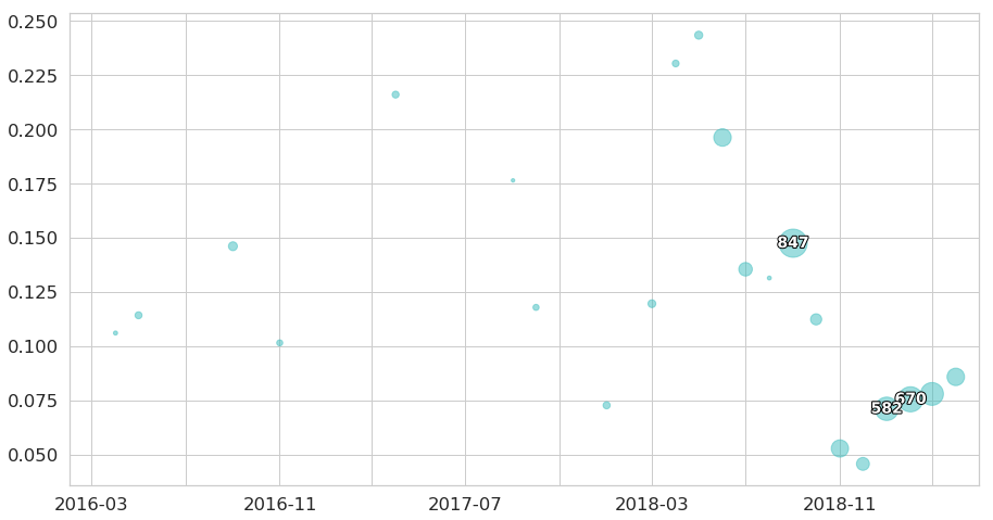 Next, various maps are created based on the t-SNE algorithm. The example below presents the news stories in two-dimensions: articles that report on the same subject are clustered together. We demonstrate that this technique is highly useful to discover more narrow, domain-specific areas within the umbrella topics. Moreover, the distance between clusters is also meaningful, enabling the analysis of relationships between topics as well.